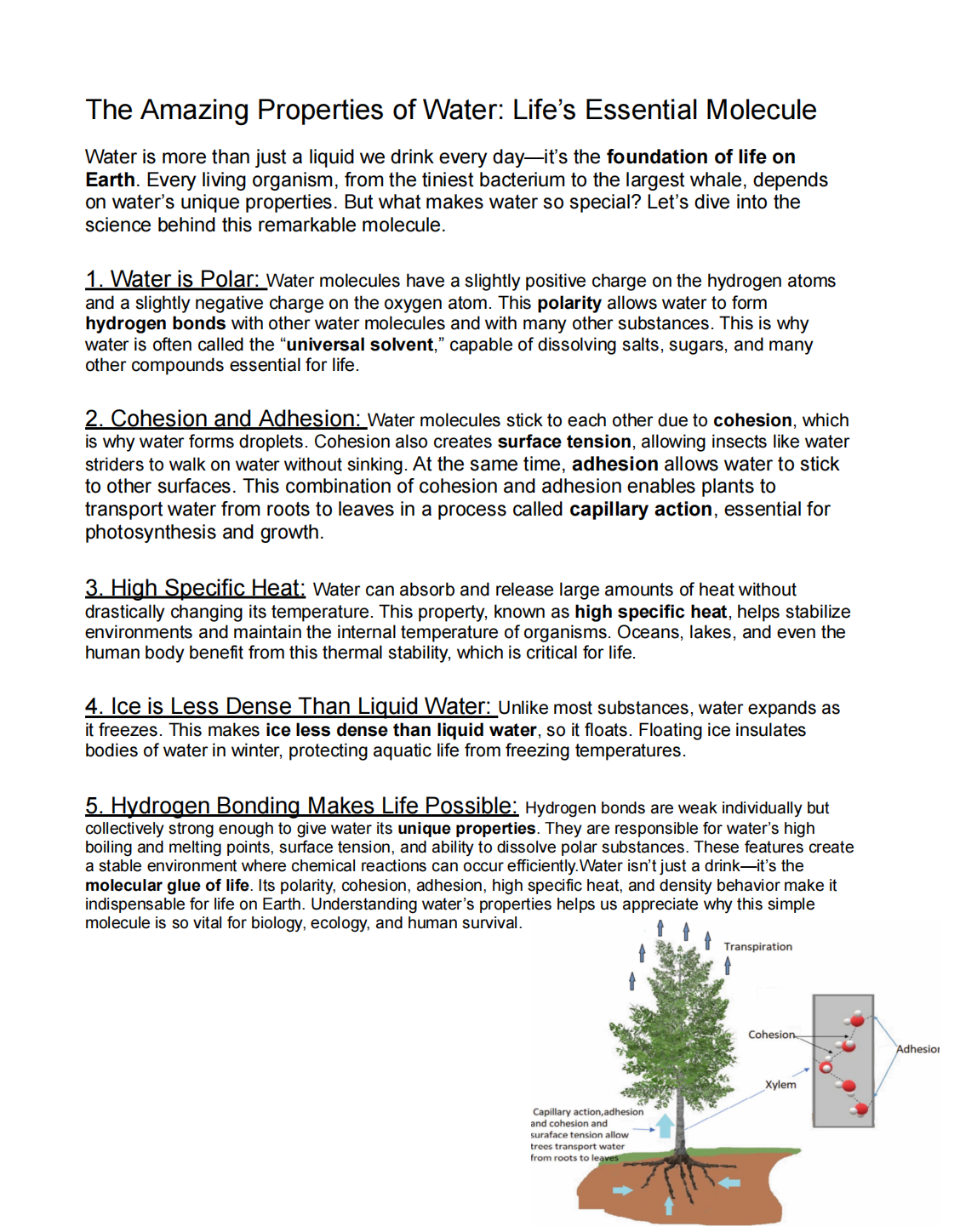 The Amazing Properties of Water: Life’s Essential Molecule